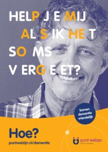 1 op de 5 mensen krijgt dementie en elk uur komen er in Nederland vijf mensen met dementie bij. Deze ziekte heeft veel impact op de persoon zelf en zijn omgeving. De kans is heel groot dat ook jij te maken krijgt met dementie. Via een familielid, een vriend, een lid van je sportclub, een klant of een buurtbewoner. Het kan iedereen overkomen, en dan? Weet jij hoe je dementie herkent? Hoe je een helpende hand uit kunt steken? Vanaf 8 september 2025 vindt er een campagne plaats om aandacht te vragen voor dit onderwerp. In Weert en Nederweert verzorgt Punt Welzijn de campagne door middel van het plaatsen van lantaarnpaalborden en het ophangen van posters.