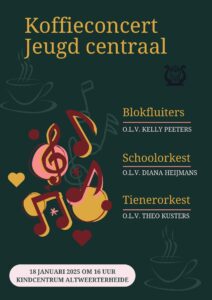 Op 18 januari 2025 om 16.00 uur organiseert de Harmonie van het Heilig Hart Altweerterheide in het kindcentrum Altweerterheide, een koffieconcert waarin de jeugd centraal staat.