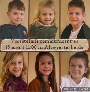 Welnu dan stellen de zes kanjers hieronder op de foto zich aan jullie voor. Zij gaan op 24 mei 2026 in de kerk van Altweerterheide de communie doen.